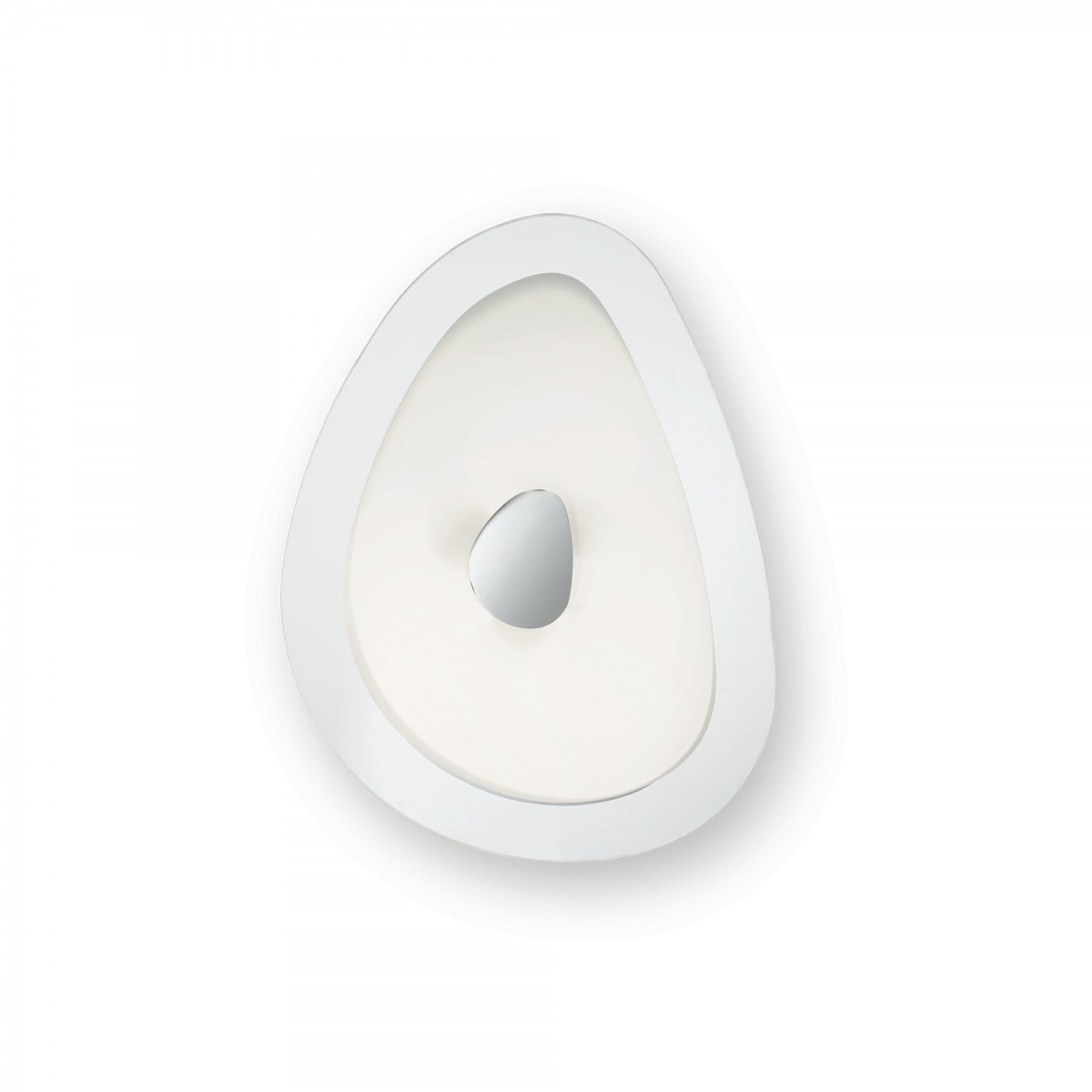 Die Leuchte besteht aus einem weiß emaillierten Metallrahmen und einem Diffusor. Der Diffusor wird in einer Kombination aus satiniertem und sandgestrahltem Glas geliefert, mit einem dekorativen Chromelement in der Mitte.Produktparameter