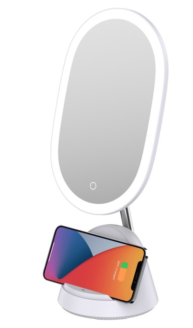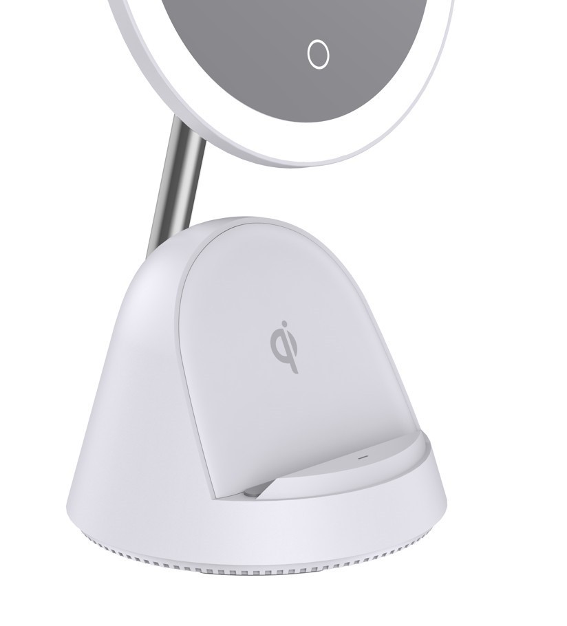 Der Kosmetikspiegel erfasst einen großen Bereich von Gesicht und Hals effektiv und komfortabel, und sein zusätzlicher magnetischer Vergrößerungsspiegel (mit 3-facher Vergrößerung) stellt jedes Detail präzise dar, sodass Sie ganz einfach ein perfektes Make-up erzielen können. Das Licht der LED blendet nicht und behält die für die Verschönerung erforderliche Farbgenauigkeit bei. Der unter dem Spiegel platzierte Handyständer ist ein praktisches Accessoire, mit dem Sie direkt beim Schminken angesagte Videos oder Filme und Serien ansehen können. Wenn Ihr Telefon das drahtlose Qi-Laden unterstützt, legen Sie es einfach in den Ständer und Ihr Telefon beginnt automatisch mit dem Ladevorgang.