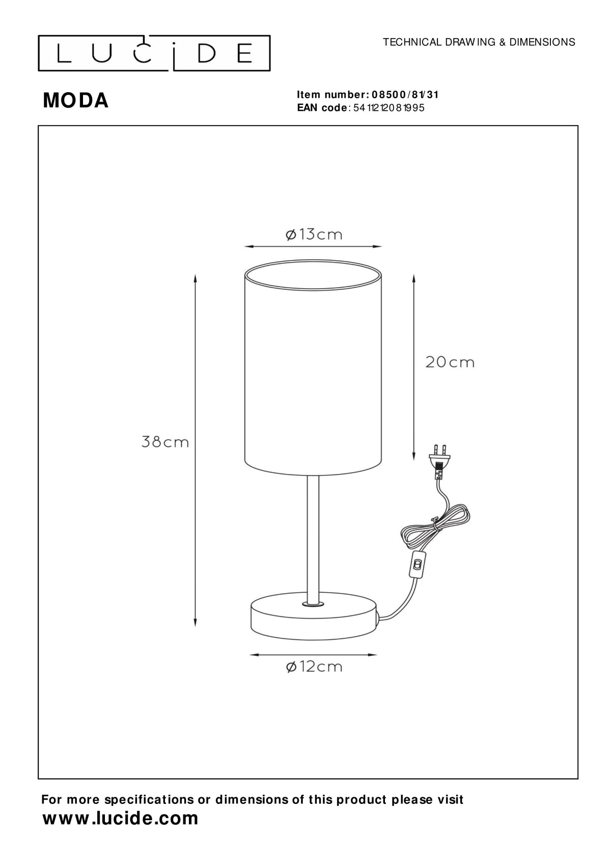 Lucide 08500/81/31 Tischleuchte Moda 1x60W | E27