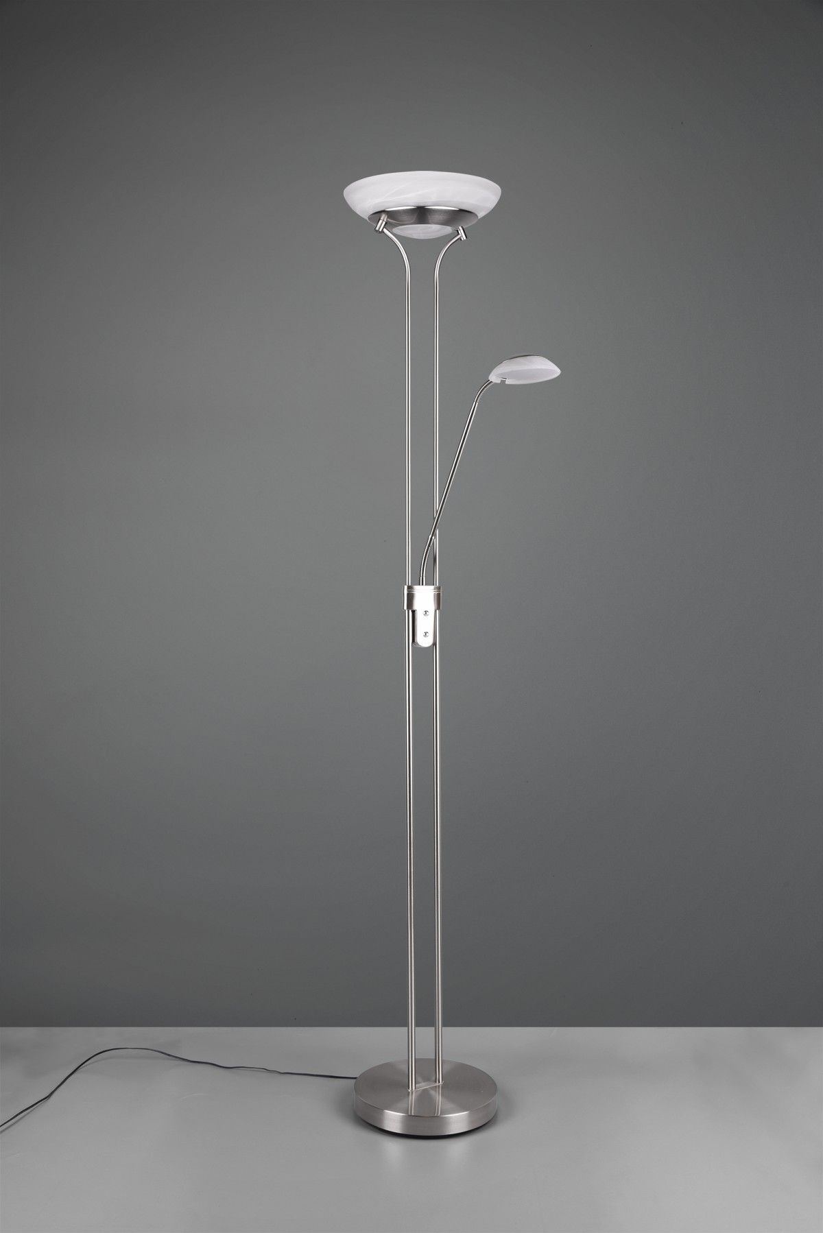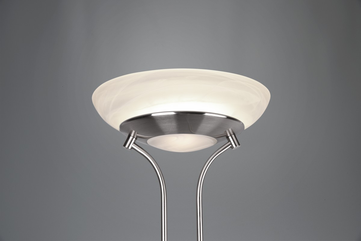 TRIO R40073507 LED Stehleuchte Orson 1x27W + 1x4,5W | 3150lm | 3000K | IP20 - dimmbar Memory-Funktion, separater Schalter, Nickel mit Alabaster