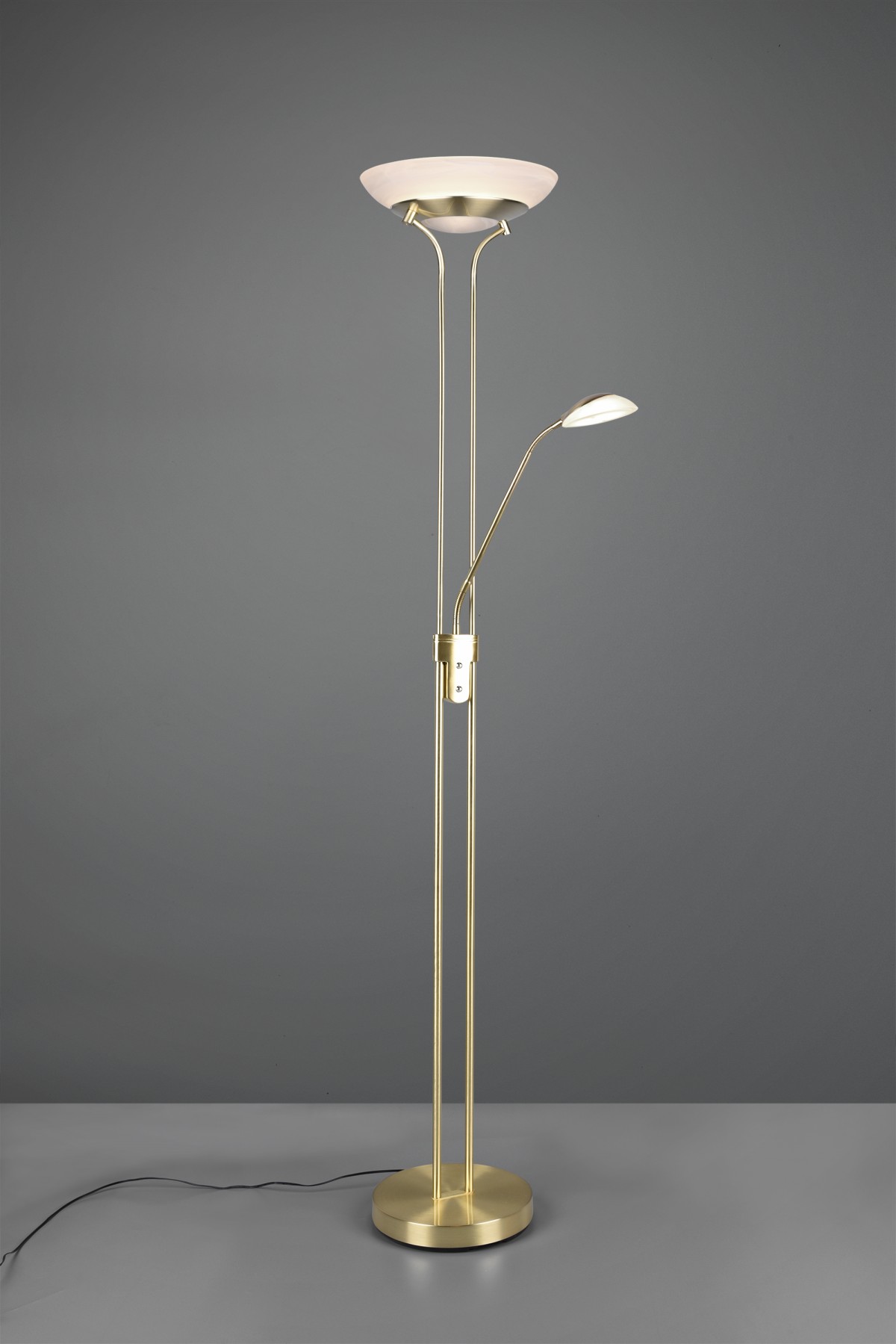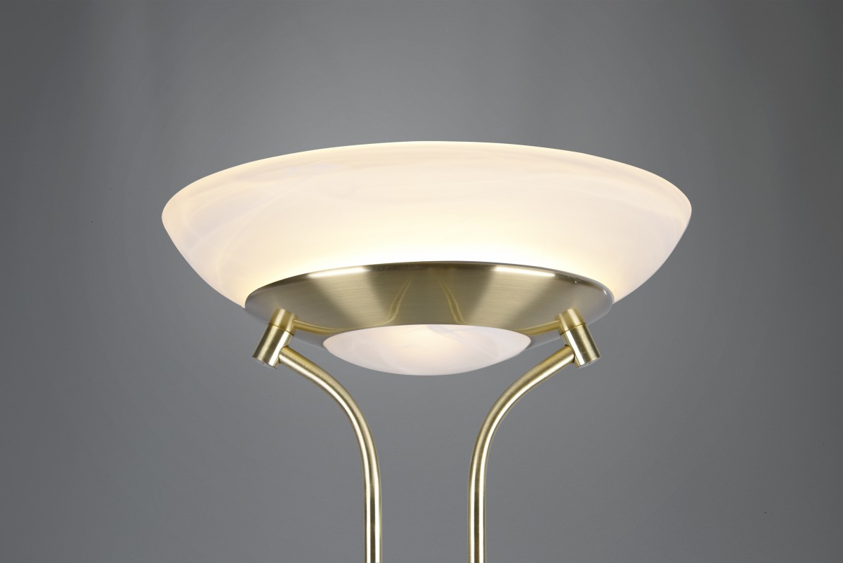 TRIO R40073508 LED Stehleuchte Orson 1x27W + 1x4,5W | 3150lm | 3000K | IP20 - dimmbar Memory-Funktion, separater Schalter, Messing mit Alabaster