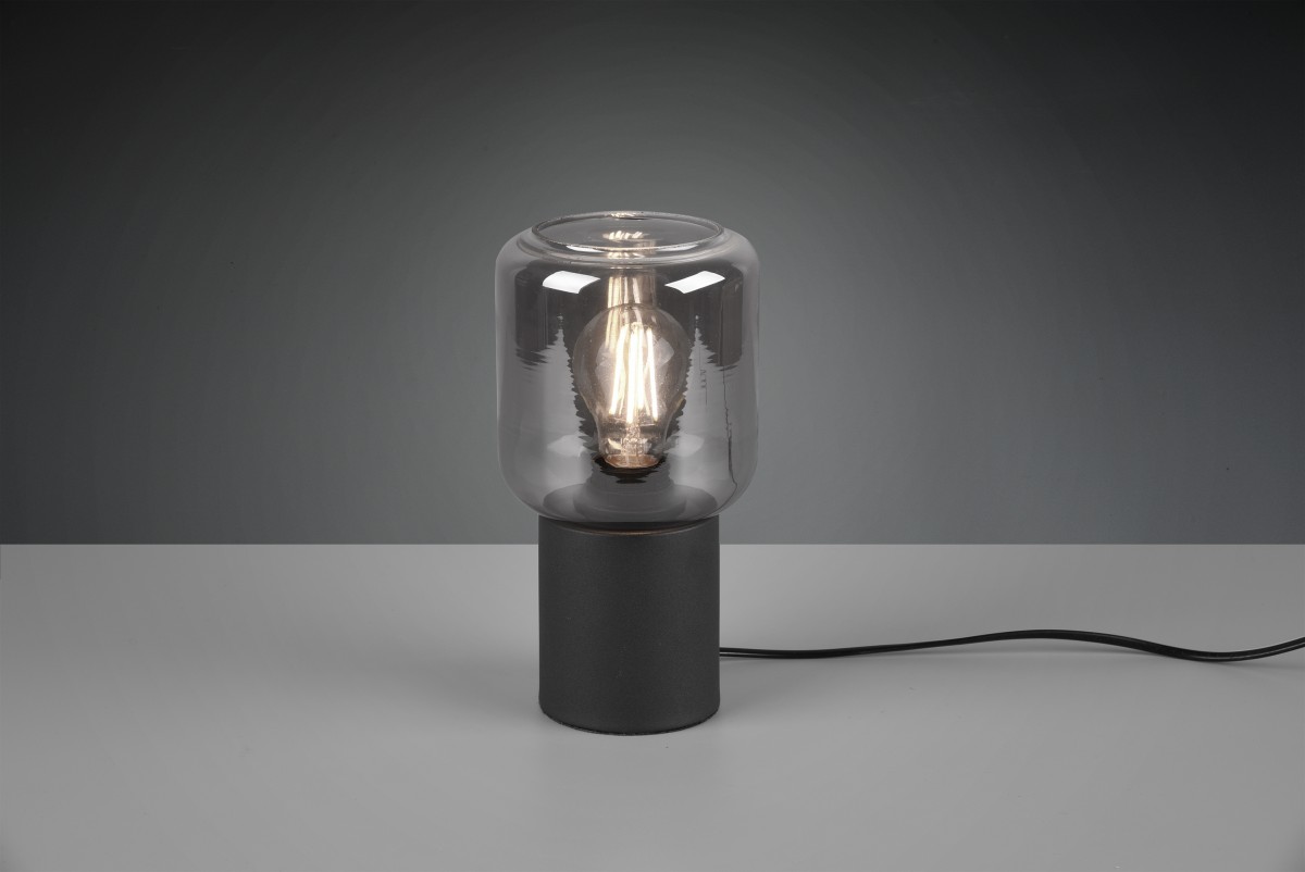 Trio-Tischlampe TR50591032 Nico wird eine angenehme Wiederbelebung moderner Innenräume sein. Diese Leuchte wird dank ihrer schlichten und eleganten Formen besonders Liebhaber des Minimalismus erfreuen. Sie eignet sich besonders gut für das Wohnzimmer, Schlafzimmer oder um andere dunkle Ecken der Räume zu beleuchten. Der Fuß der Leuchte besteht aus Metall in mattem Schwarz, der Diffusor besteht dann aus Rauchglas.