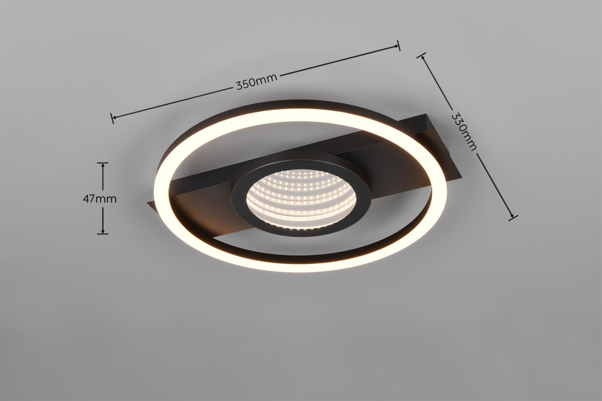 Decken- und Wandlampe WHEELER von der deutschen Marke Trio besticht durch ihr modernes minimalistisches Design in schwarzer Ausführung . Ihre elegante Form in Kombination mit der matten…